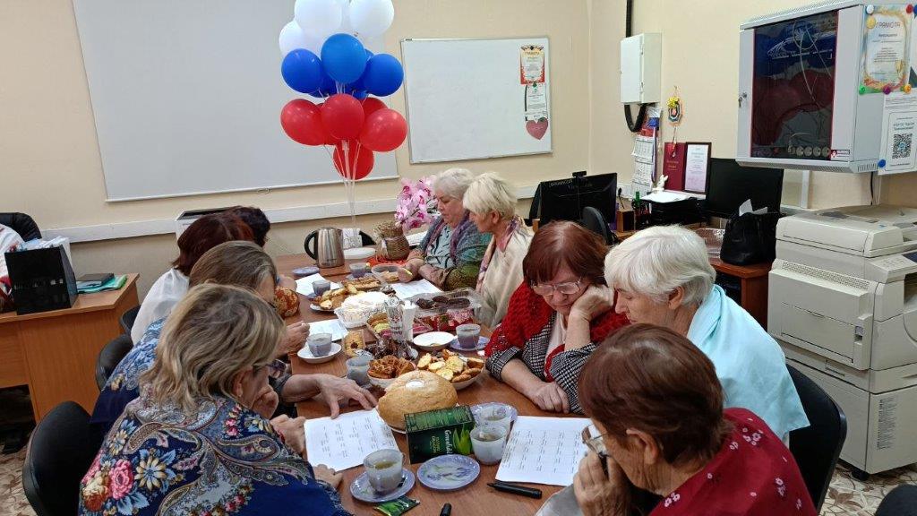 Встреча сопровождалась традиционным русским чаепитием. Гостей пригласили насладиться горячим ароматным чаем со сладостями. За столом звучали народные песни, и атмосфера становилась всё теплее. Под самые душевные мотивы нашлись желающие потанцевать, показывая своё умение двигаться в ритме народных мелодий.