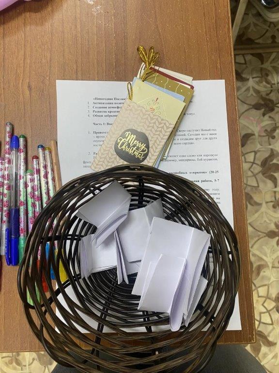 Вторым, волнующим этапом стала «волшебная почта». Каждый написал два анонимных добрых послания другим участникам, чтобы втайне обменяться теплыми словами, поддержкой и признательностью. Но главным личным сокровищем для каждого стала открытка с пожеланиями самому-себе на 2026 год-бережное напутствие в собственное будущее, составленное от всего сердца.